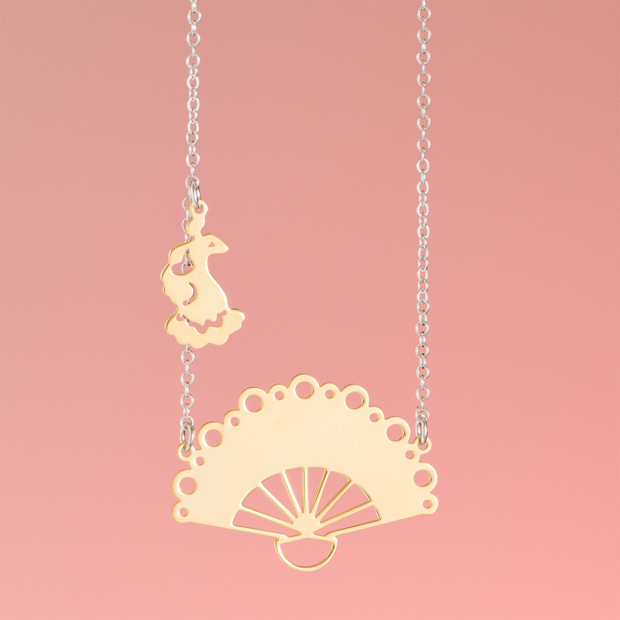 Srebrny naszyjnik z pozłacanym wachlarzem, AG925 46cm