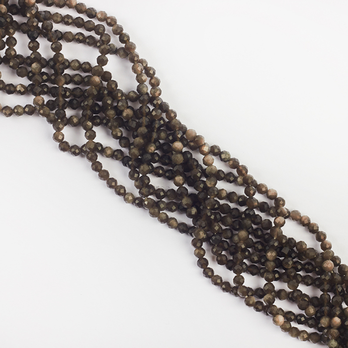 Srebrny obsydian kulka fasetowana 4mm