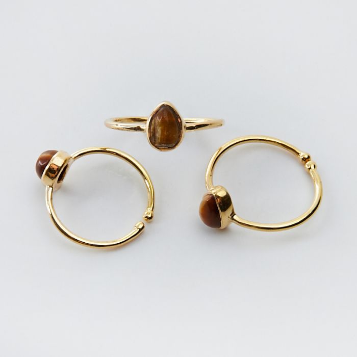 Srebrny pierścionek regulowany z tygrysim okiem łezka AG925 pozłacany 20mm