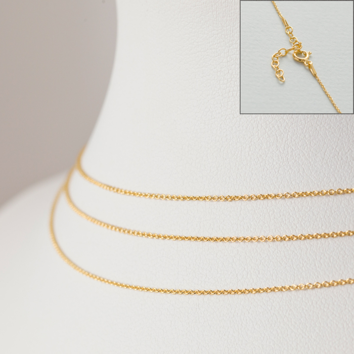 Srebrny, pozłacany łańcuszek z przedłużką ankierka gładka AG925 44cm