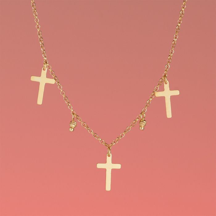 Srebrny, pozłacany naszyjnik krzyżyki AG925 34-38cm