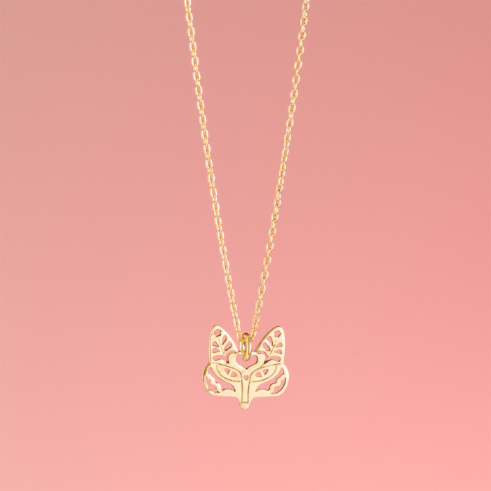 Srebrny, pozłacany naszyjnik lisek ażurowy, AG925 46cm