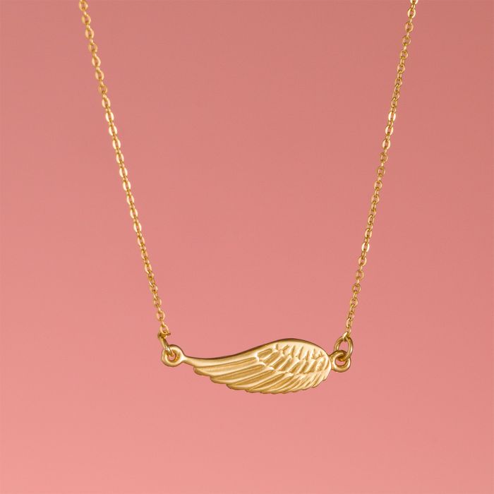 Srebrny, pozłacany naszyjnik ze skrzydłem anioła, AG925 45cm