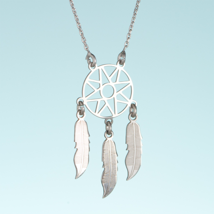 Srebrny rodowany naszyjnik origami łapacz snów AG925 44cm