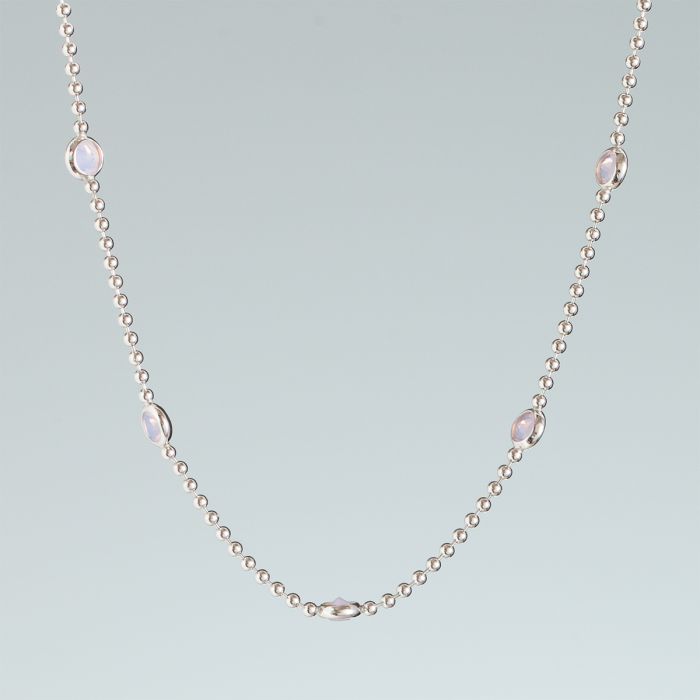 Srebrny rodowany naszyjnik z oczkami rose opal, AG925 45cm