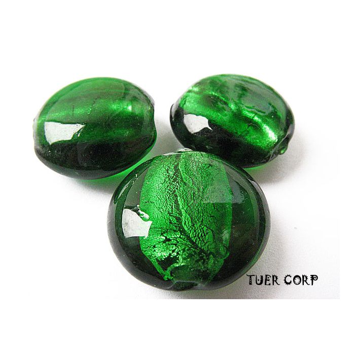 Szkło weneckie krążek zielony 15mm