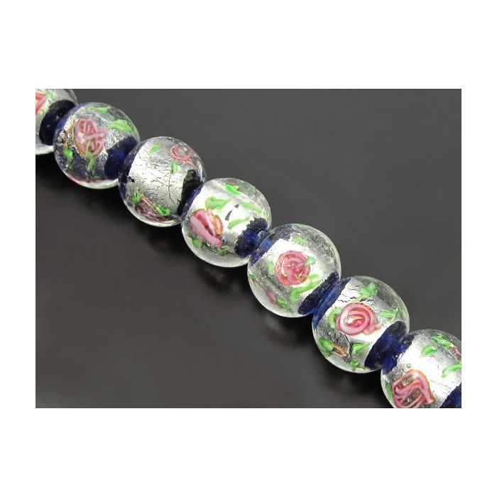 Szkło weneckie lampwork kulka róża w granacie 18mm