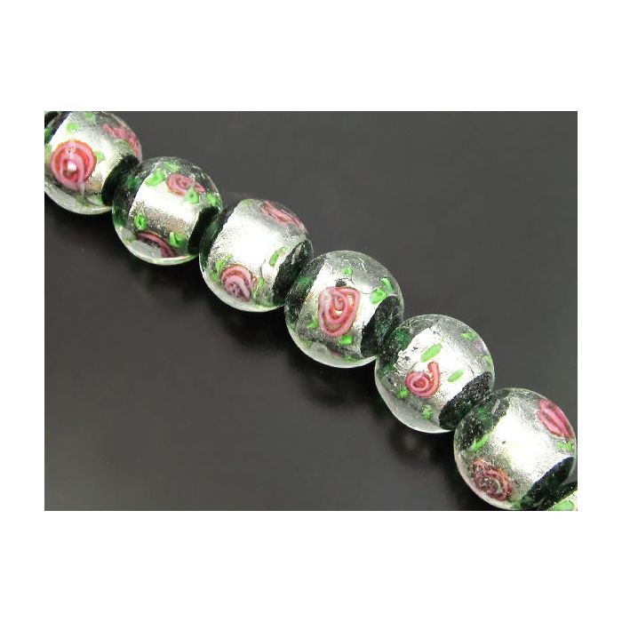 Szkło weneckie lampwork kulka róża w zieleni 18mm