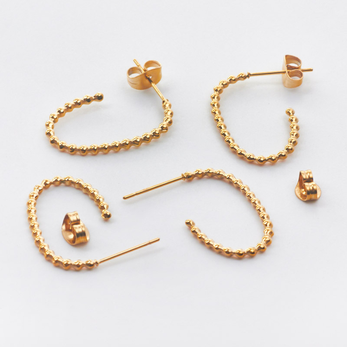 Sztyfty ozdobne ze stali chirurgicznej z kuleczek w kolorze złotym 23,5mmTo estetyczny element biżuteryjny ze stali szlachetnej, chętnie wybierany do nowoczesnych projektów. Stal szlachetna jest ceniona za odporność na korozję i estetyczny wygląd w codziennym użytkowaniu.Element do kolczyków wykonany ze stali szlachetnej to praktyczna baza do tworzenia wygodnej i trwałej biżuterii. Dzięki prostej formie można go wykorzystać zarówno w minimalistycznych projektach, jak i w bardziej ozdobnych kompozycjach z kamieniami, perłami lub zawieszkami.Rozmiar