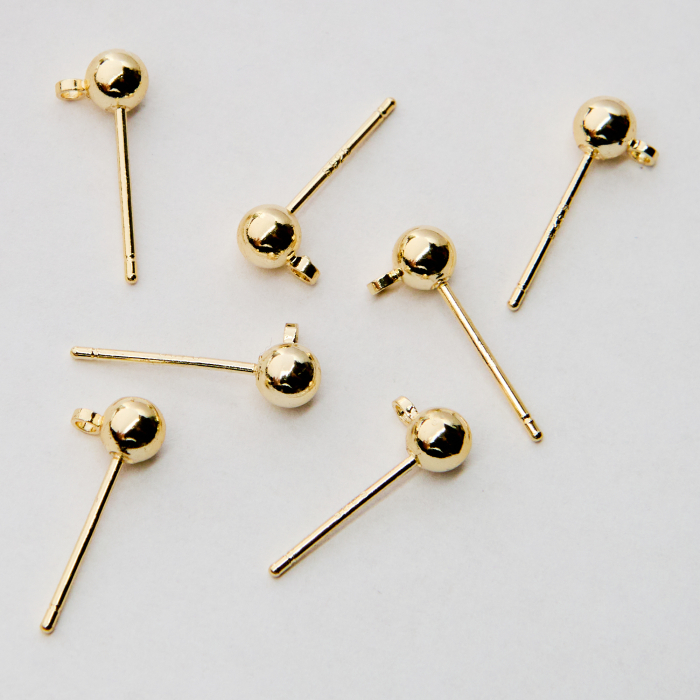 Sztyfty z kulką i podwieszeniem z mosiądzu w kolorze złotym 6mm