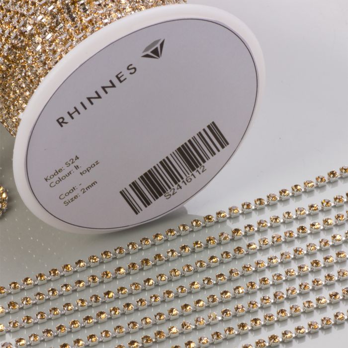 Taśma z kryształkami kolor srebrny lt. topaz 2mm