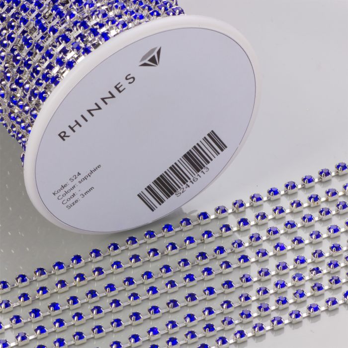Taśma z kryształkami kolor srebrny sapphire 3mm