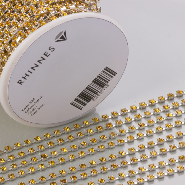 Taśma z kryształkami kolor srebrny topaz 3mm