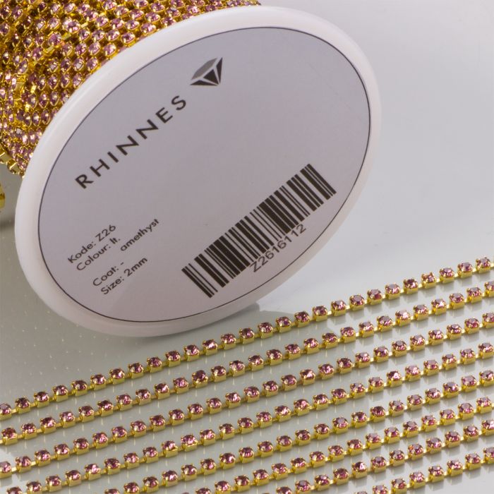 Taśma z kryształkami kolor złoty amethyst rose 2mm