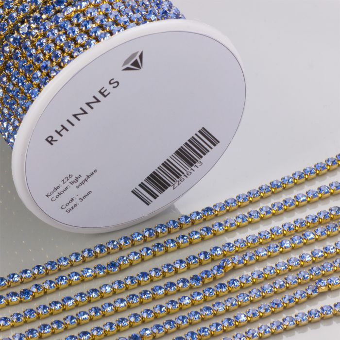Taśma z kryształkami kolor złoty lt. sapphire 3mm