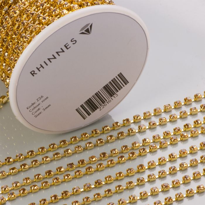 Taśma z kryształkami kolor złoty tl. topaz 3mm