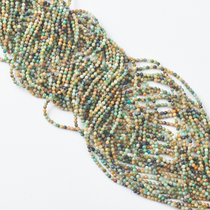 Drobne, fasetowane, kuleczki turkusu w różnych odcieniach zieleni. Każdy kamień jest w innym kolorze, z charakterystycznymi dla tego minerału brązowymi i czarnymi żyłkami.*Uwaga!Produkt przeznaczony do wykonywania rękodzieła w tym biżuterii i innych ozdób. Charakterystyka: