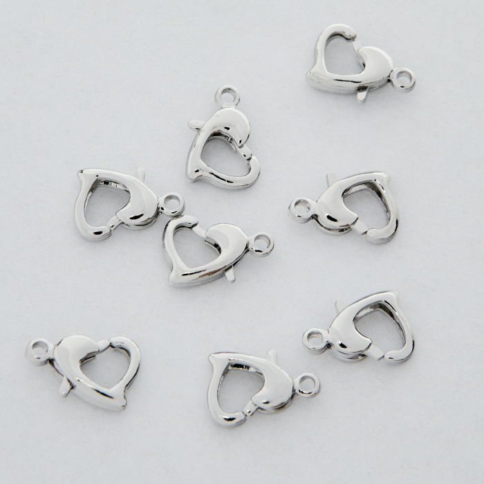 Zapięcie karabińczyk serduszko z mosiądzu w kolorze srebrnym 10,5mm