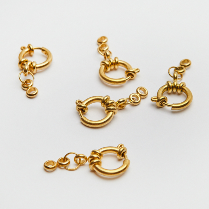 Zapiecie ozdobne federing ze stali szlachetnej w kolorze złotym 12mmTo funkcjonalny komponent do biżuterii handmade. W biżuterii handmade stal szlachetna jest ceniona za dobry wygląd, odporność na korozję i wygodę codziennego użytkowania.W tym produkcie zastosowano stal szlachetną