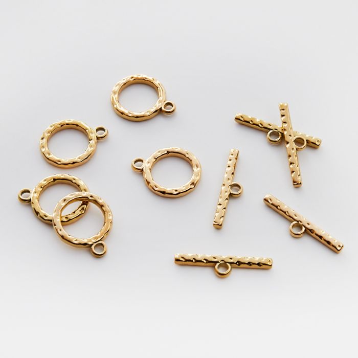 Zapięcie toggle ze stali chirurgicznej gniecione w kolorze złotym 16mm PVD