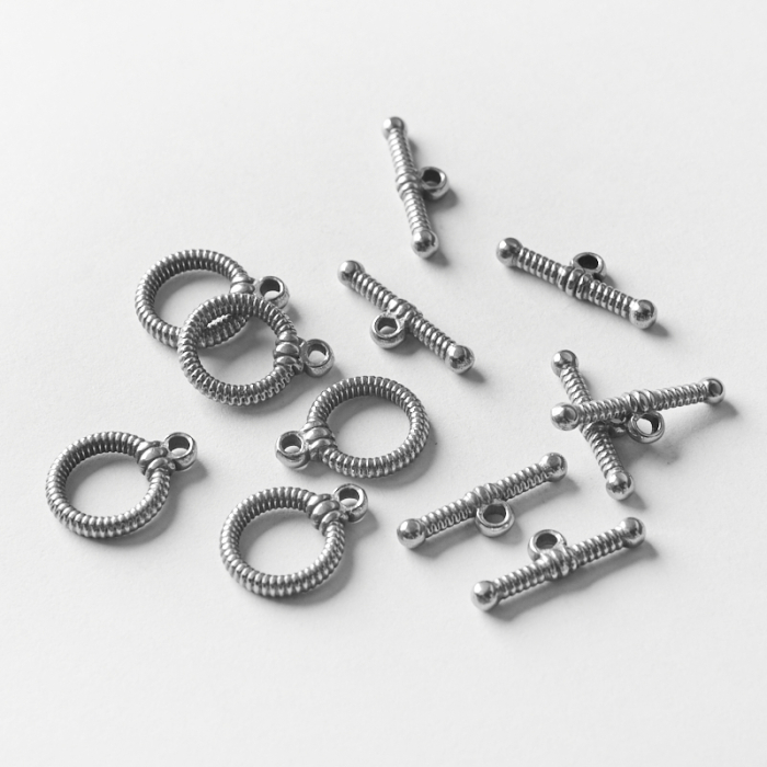 Zapięcie toggle ze stali szlachetnej nacinane w kolorze srebrnym 12mmTo uniwersalny element wykończeniowy i dekoracyjny do projektów jubilerskich. W biżuterii handmade stal szlachetna jest ceniona za dobry wygląd, odporność na korozję i wygodę codziennego użytkowania.W tym produkcie zastosowano stal szlachetną