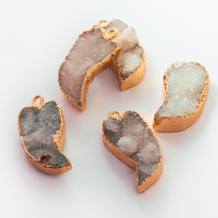 Zawieszka Agat druzy w złotym okuciu kieł biały 30mm
