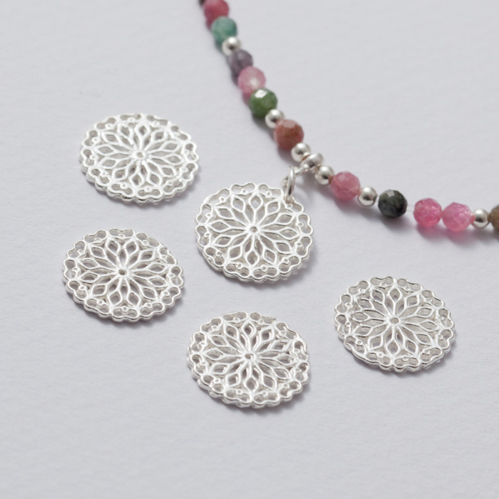 Zawieszka ażurowa rozeta srebrny 15 mm