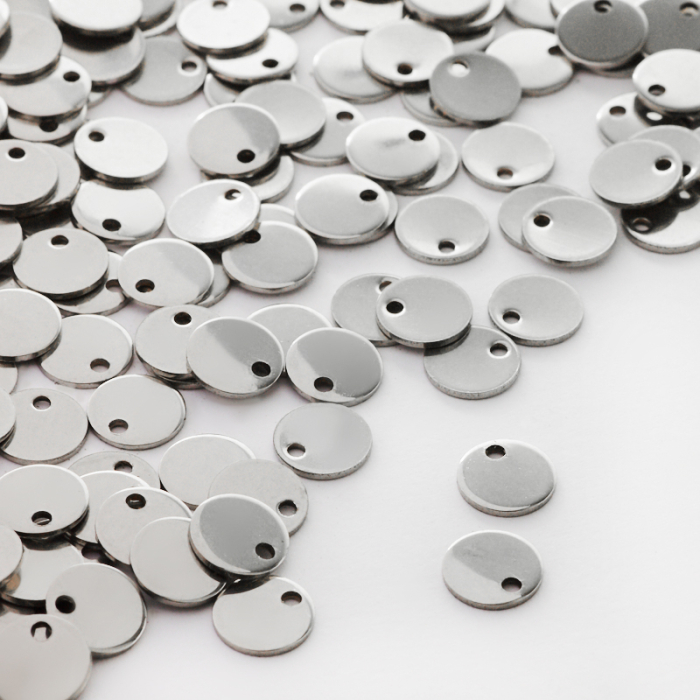 Zawieszka blaszka okrągła gładka w kolorze srebrnym 8mmTo starannie wykonany produkt ze stali szlachetnej, który dobrze prezentuje się w codziennym użytkowaniu. Stal szlachetna jest ceniona za odporność na korozję i estetyczny wygląd w codziennym użytkowaniu.Zawieszka ze stali szlachetnej to dekoracyjny element, który nadaje biżuterii charakteru i pozwala tworzyć spersonalizowane projekty. Świetnie sprawdza się w naszyjnikach, bransoletkach, kolczykach oraz drobnych charmsach.Forma lub motyw