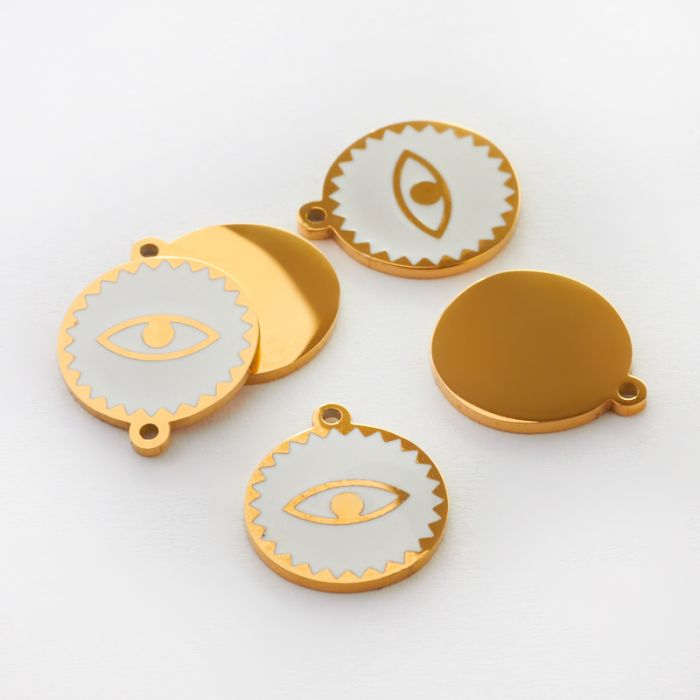 Zawieszka emaliowana kółko ze stali chirurgicznej w kolorze złotym oczko białe 13mm