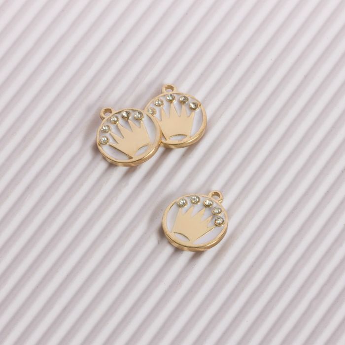 Zawieszka emaliowana korona z kryształkami biały 13mm