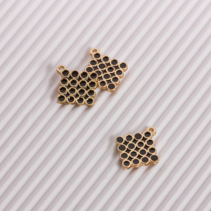 Zawieszka emaliowana kwadrat w bąbelki czarny 15mm