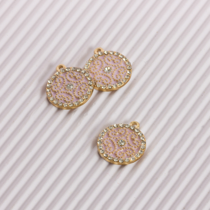 Zawieszka emaliowana ornament z kryształkami różowy 15mm