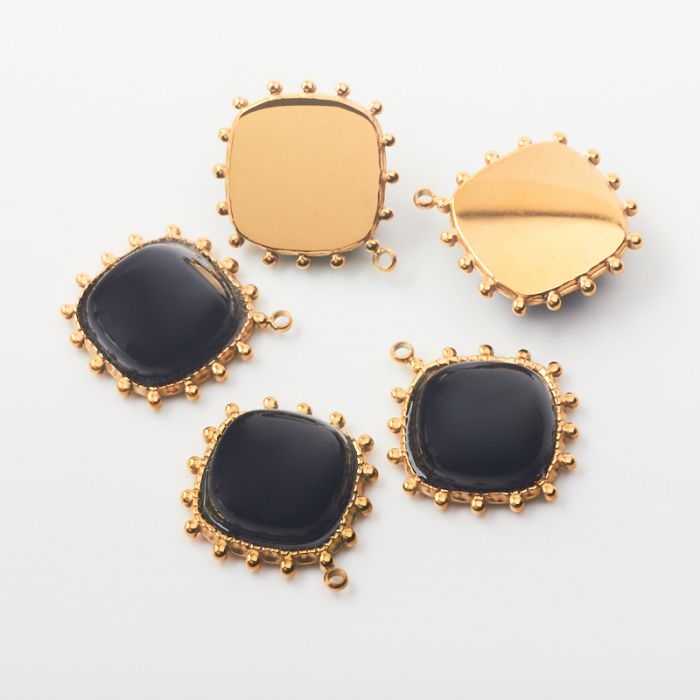 Zawieszka kwadrat ze stali chirurgicznej z onyksem w kolorze złotym 21,5mm