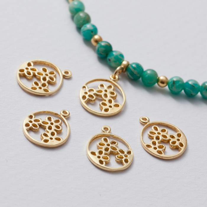 Zawieszka kwiatki w kółku AG925 złoty 12mm