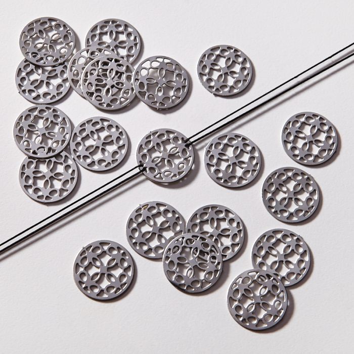 Zawieszka łącznik ze stali chirurgicznej ażur w kolorze srebrnym 18,5mm