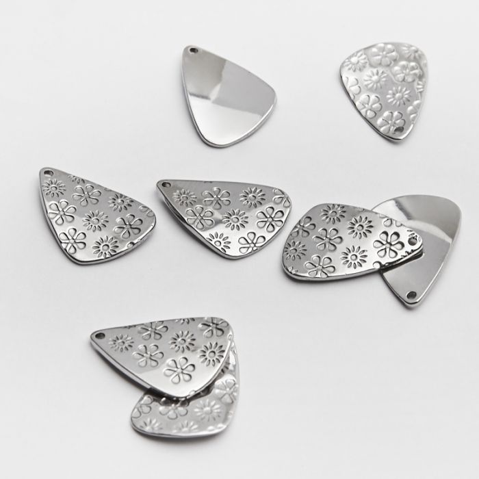 Zawieszka łezka wygięta w kwiatki ze stali chirurgicznej w kolorze srebrnym 22mm