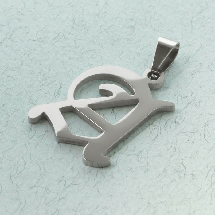 Zawieszka literka gotycka A ze stali chirurgicznej z krawatką w kolorze srebrnym 22,5mm