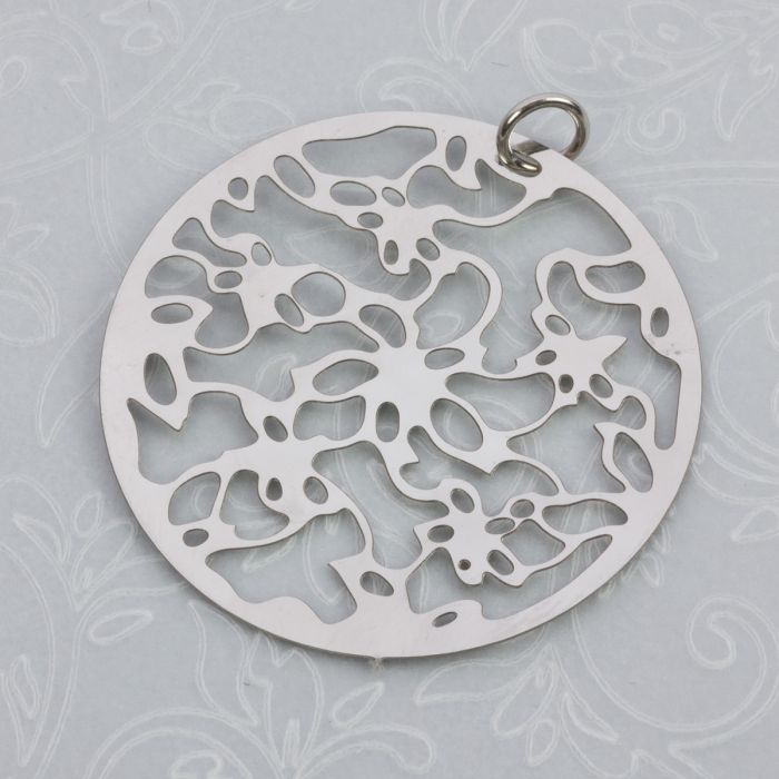 Zawieszka okrągła wycinane kwiaty stal chirurgiczna z kółeczkiem w kolorze srebrnym 30mm