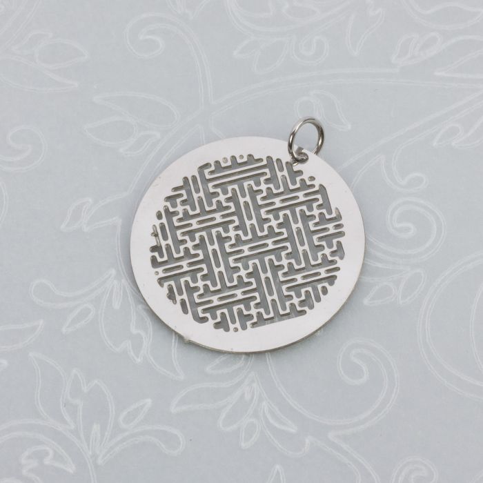 Zawieszka okrągła wycinany labirynt stal chirurgiczna z kółeczkiem w kolorze srebrnym 20mm