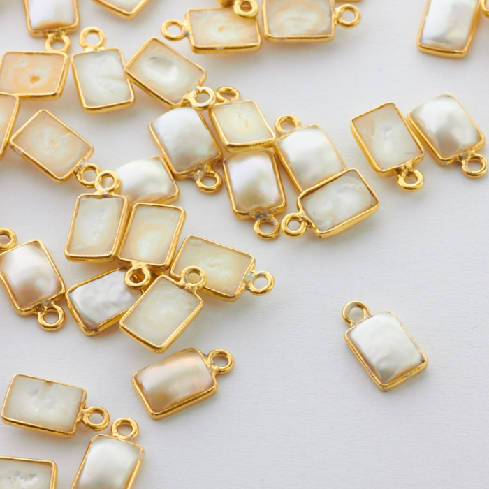 Zawieszka perła prostokątna w okuciu pozłacanym AG925 7x5mm