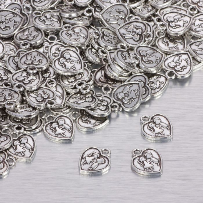 Zawieszka serce w kolorze ciemnego srebra z zakochaną parą 15.5x13mm