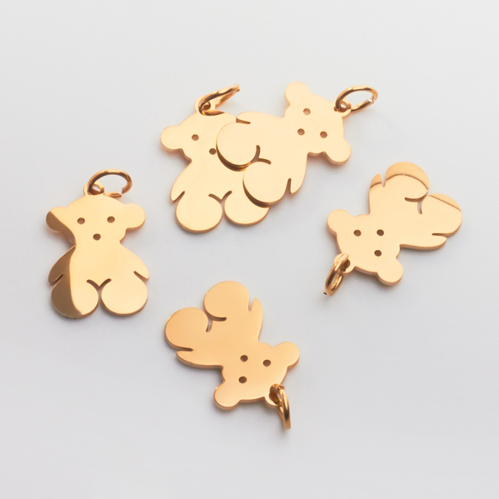 Zawieszka stali szlachetnej miś w kolorze złotym 16mm PVDTo starannie wykonany produkt ze stali szlachetnej, który dobrze prezentuje się w codziennym użytkowaniu. W biżuterii handmade stal szlachetna jest ceniona za dobry wygląd, odporność na korozję i wygodę codziennego użytkowania. Wykończenie w kolorze złotym uzyskane metodą PVD.Stal szlachetna to materiał ceniony za trwałość i estetyczny wygląd w codziennym użytkowaniu.W tym produkcie zastosowano stal szlachetną