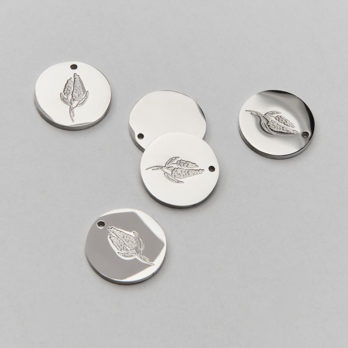 Zawieszka w kształcie koła z delikatnym grawerem kwiatów budlei Dawida w kolorze srebrnym 13mm