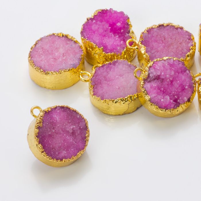 Zawieszka w okuciu agat z druzami krążek 16mm
