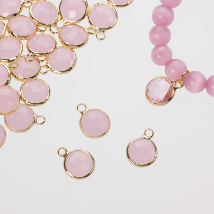 Zawieszka w okuciu w złotym kolorze z jednym oczkiem pink 10mm