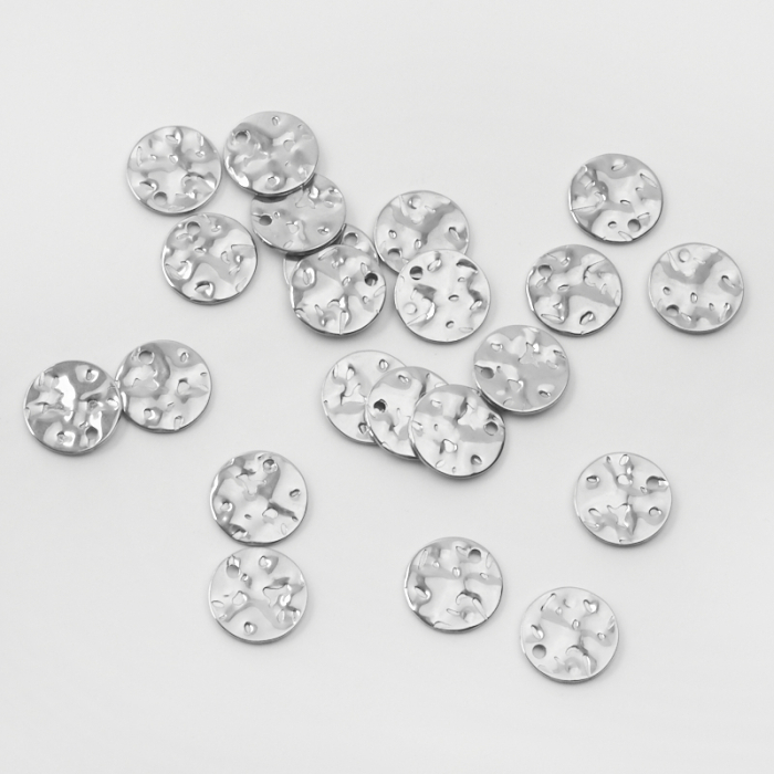 Zawieszka ze stali chirurgiczej kółko gniecione w kolorze srebrnym 12mmTo starannie wykonany produkt ze stali szlachetnej, który dobrze prezentuje się w codziennym użytkowaniu. W biżuterii handmade stal szlachetna jest ceniona za dobry wygląd, odporność na korozję i wygodę codziennego użytkowania.W tym produkcie zastosowano stal szlachetną