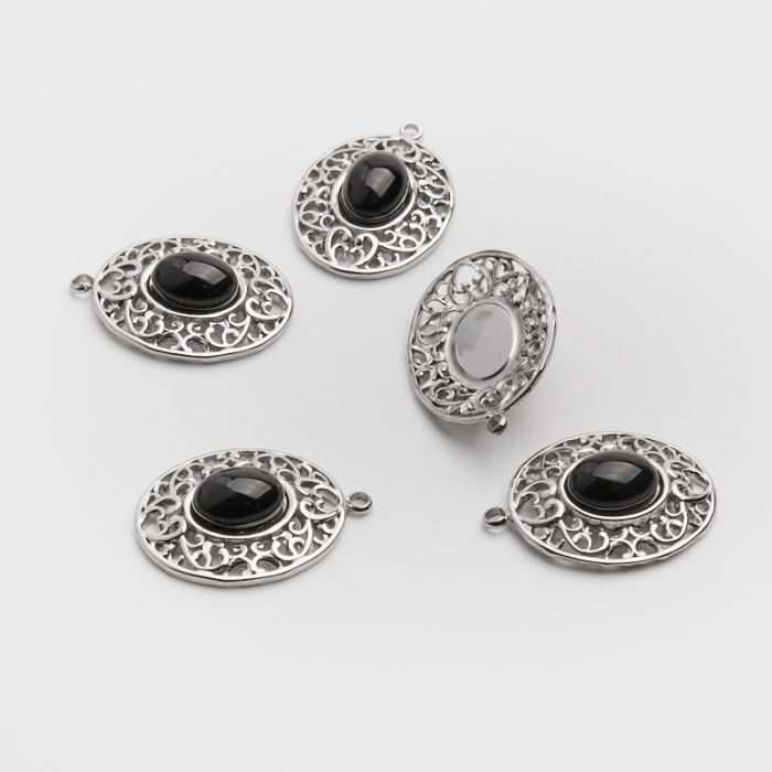 Zawieszka ze stali chirurgicznej ażurowy owal z onyksem w kolorze srebrnym 21mm