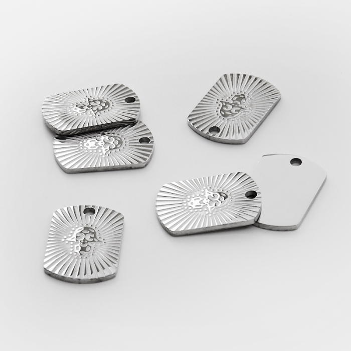Zawieszka ze stali chirurgicznej blaszka z ręką fatimy w kolorze srebrnym 20,5mm