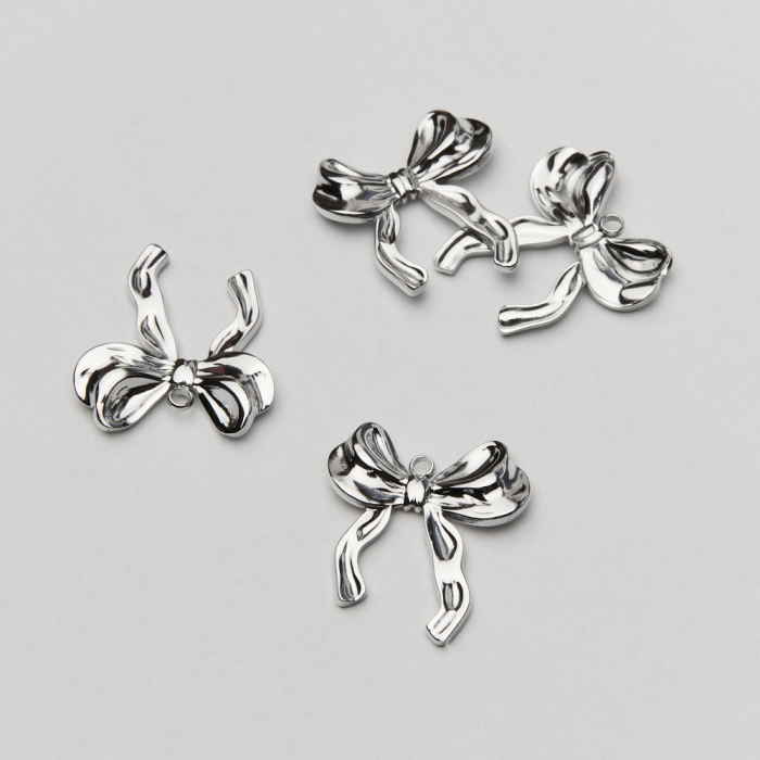 Zawieszka ze stali chirurgicznej bogata kokardka w kolorze srebrnym 24mmTo dopracowany produkt ze stali chirurgicznej, który łączy praktyczność z estetycznym wyglądem. Stal szlachetna jest ceniona za odporność na korozję i estetyczny wygląd w codziennym użytkowaniu.Zawieszka ze stali chirurgicznej to dekoracyjny element, który nadaje biżuterii charakteru i pozwala tworzyć spersonalizowane projekty. Świetnie sprawdza się w naszyjnikach, bransoletkach, kolczykach oraz drobnych charmsach.Forma lub motyw
