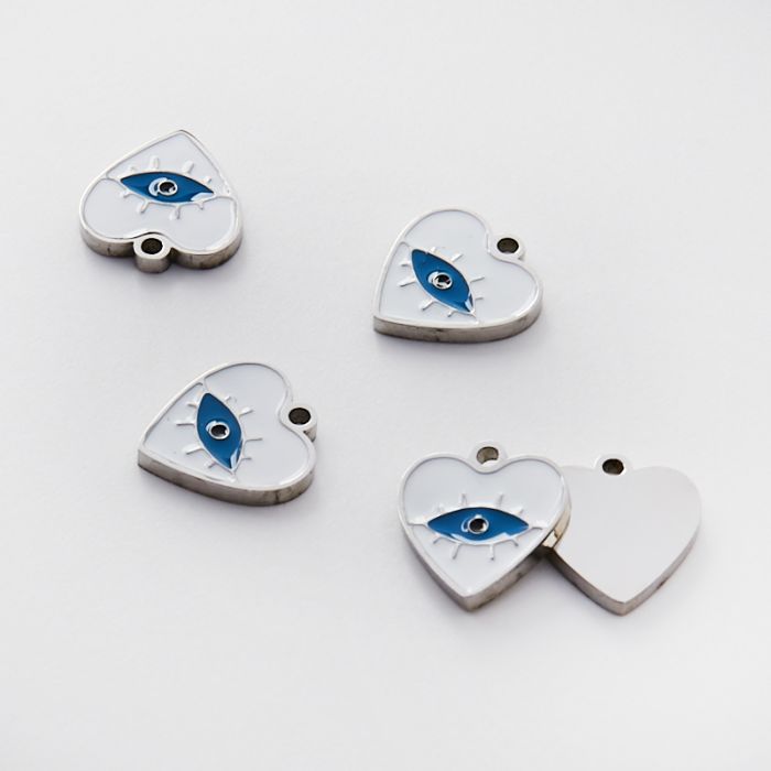 Zawieszka ze stali chirurgicznej emaliowana serce biało niebieskie w kolorze srebrnym 10mm